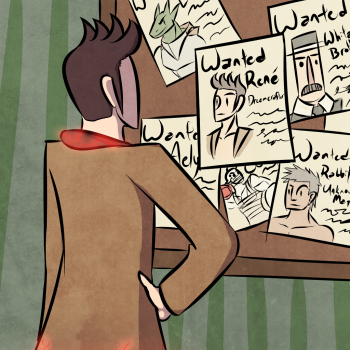 René does so. The place is swamped right now with angry and distraught people. The policeman at the front counter does a doubletake at seeing a René walk in, and starts checking some papers hurriedly.