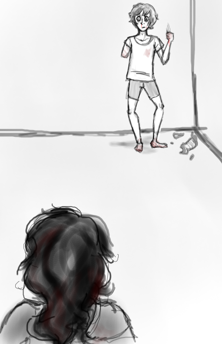 That seems to catch the monster’s attention. It cocks its head and is halfway through taking a step— when it suddenly pauses. It sniffs the air loudly in the direction of the bed. Then it turns its head, continuing to sniff the room until it is facing Marcel.