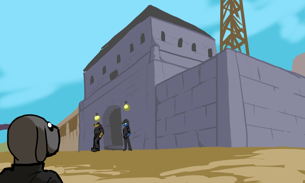 :trip01: Ok, I'm pretty sure this is where the jail is. It's the main guard house. There's a goblin and a gnoll standing outside wering the town militia uniform. I need a good story, I don't think they'll just let me in to go looking around.