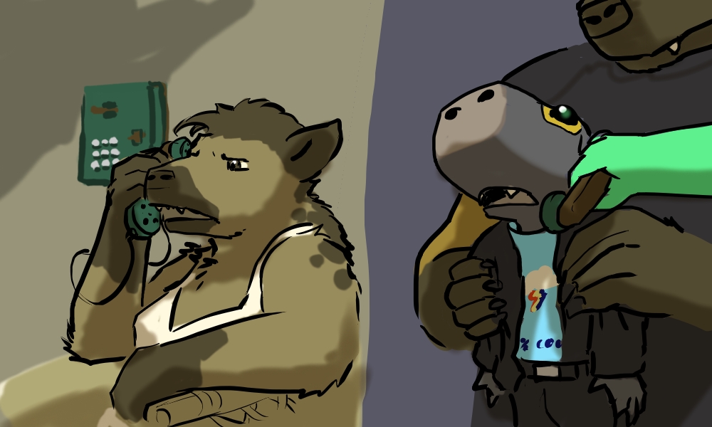 :trip01: This isn't good! The gnoll gets somebody to ring the clinic up, I can hear Veracity talking on the other end.