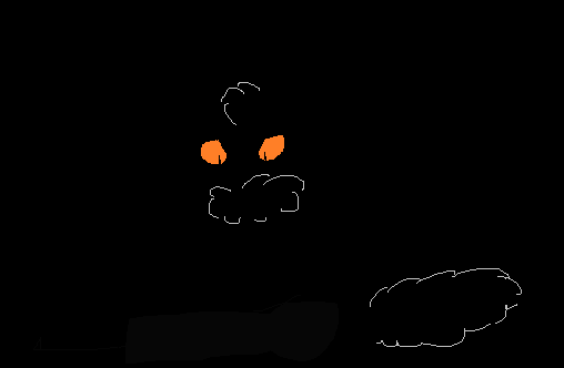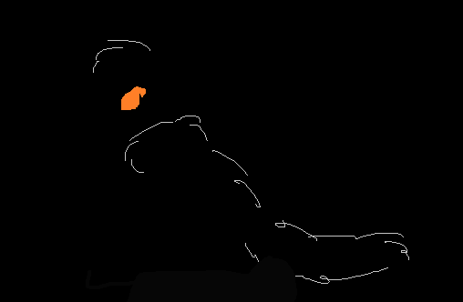 The protagonist has fainted. The observer focuses their attention on the oranged eyed creature.