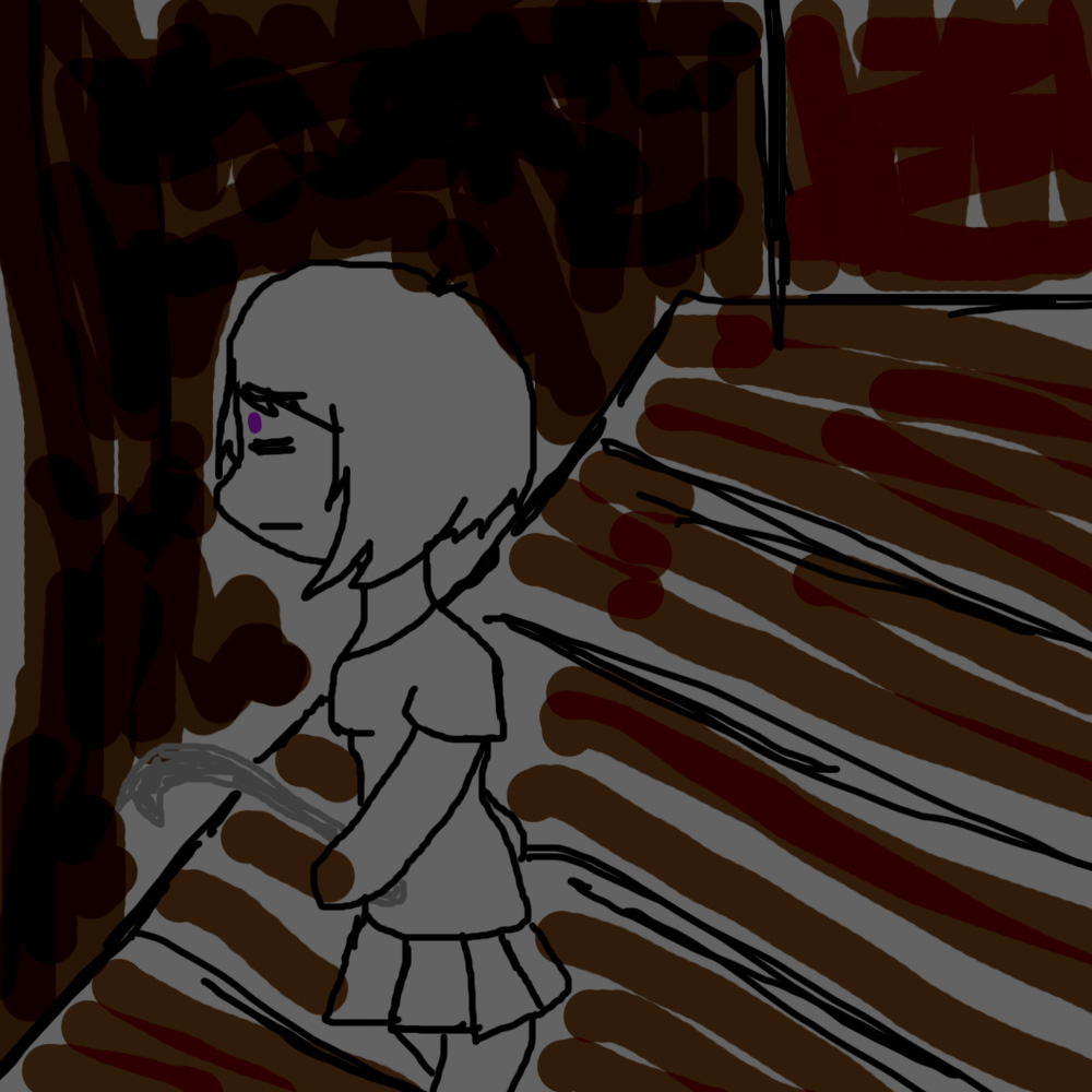 "Hello... Are you... Safe?" Violet asks as she peeked her head from the door to get a better look.
