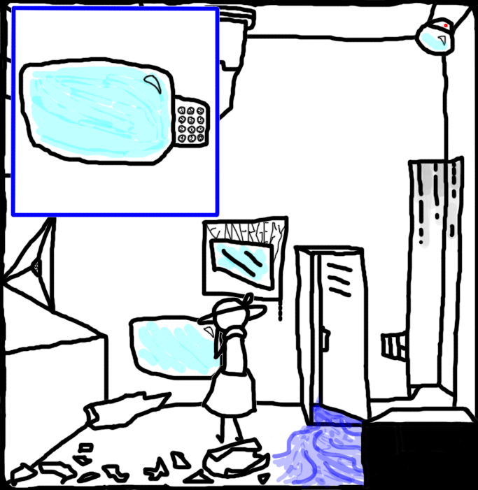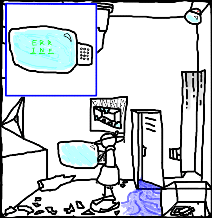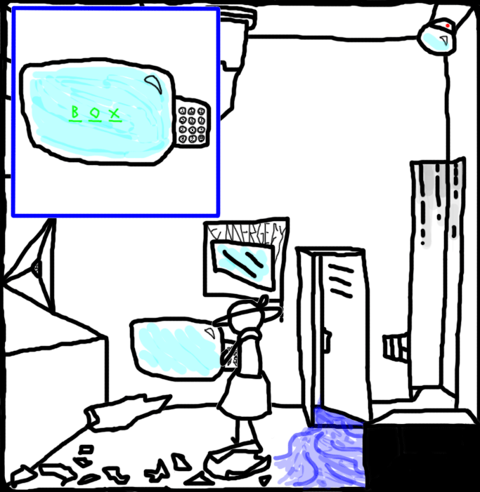 The keypad functions almost exactly as it would on a cell phone, so Lily has little difficulty operating it. She enters a few different three-character combinations, but the monitor responds, "INV" to each one, and there are no noticeable changes in the immediate environment.