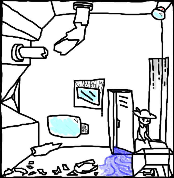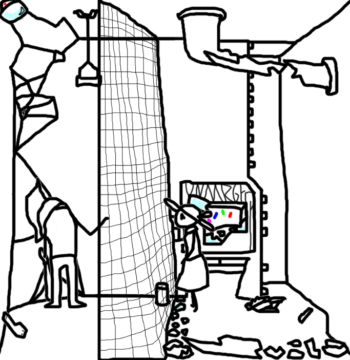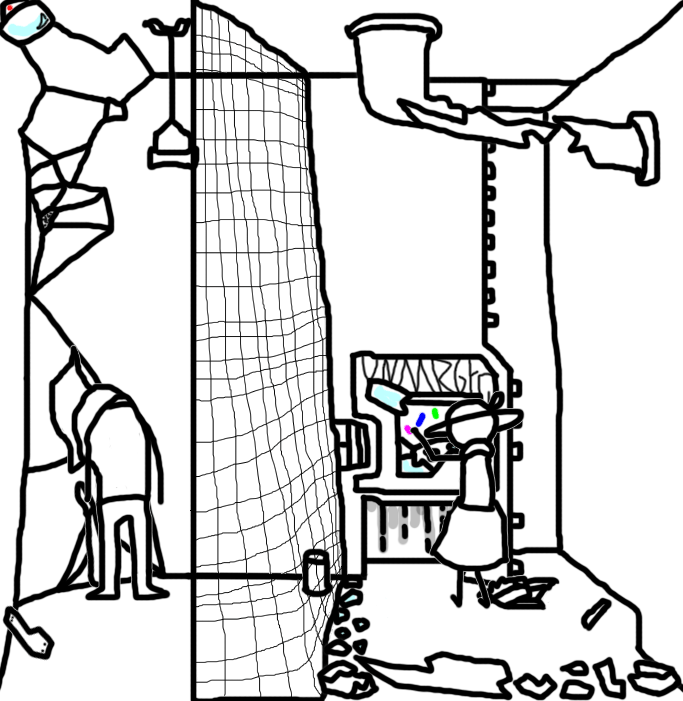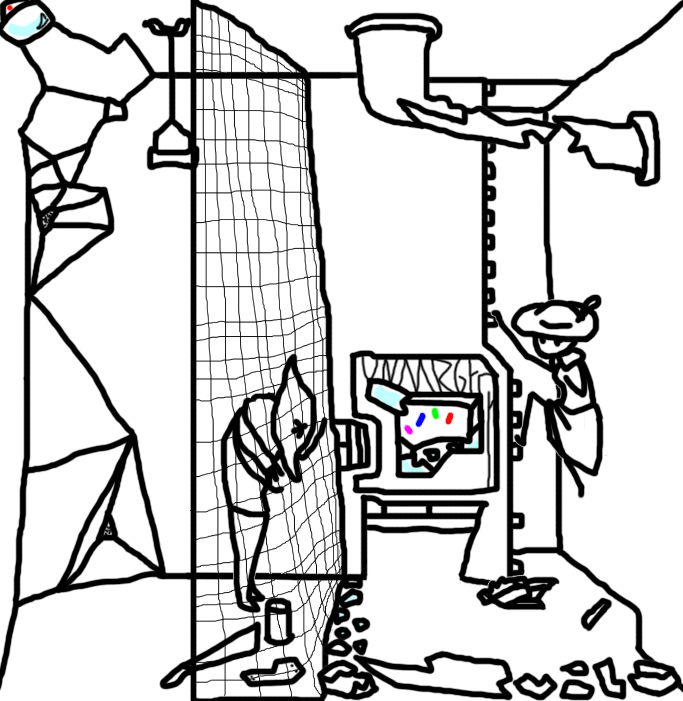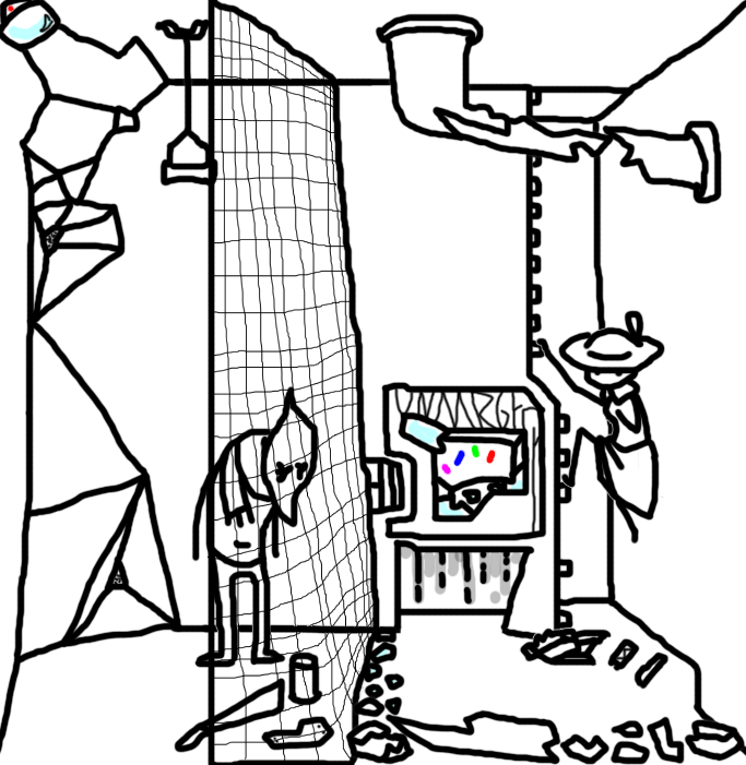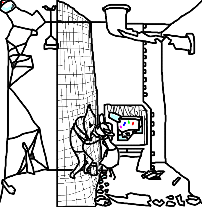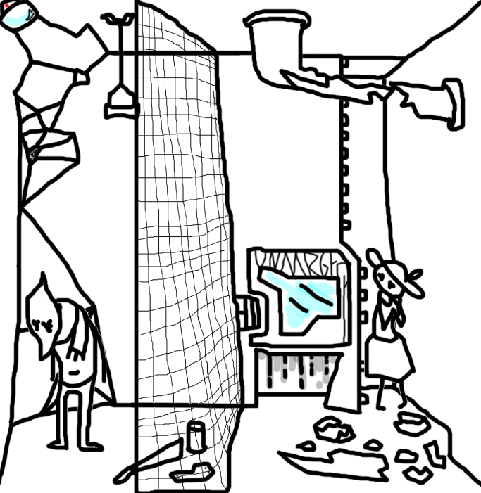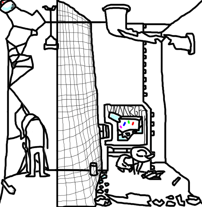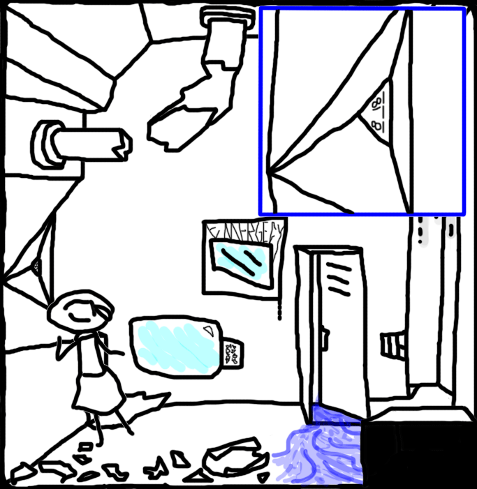 What about that funny triangular corner underneath the broken pipe? There's some kind of detail right at the tip.