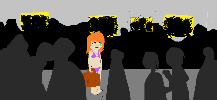 Oh dear, not again... It appears that you are standing in the middle of a BUSY DOWNTOWN SUBWAY STATION. You'd like to say that this is the first time that this has happened but it's not... It all ways happens when you're going to work. Your clothes are nowhere to be seen.
