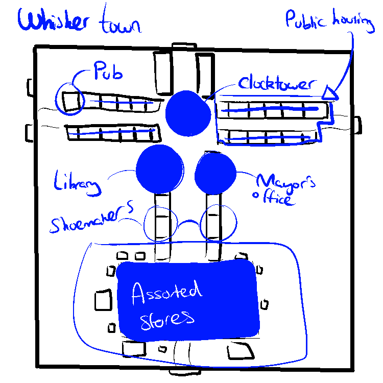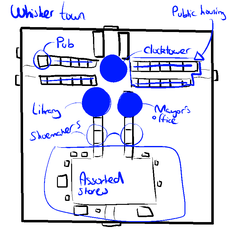 "Whisker Town is small and compact, and is entirely clod-supported: that is to say, we are unfortunately very dependant on their assistance for trade, supplies and anything which is not regarded as being a core part of town. This has proven troublesome for the late showers looking for a reliable job."