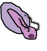 An evolution of the ParaPesh to a land based form. The surface creatures are large and easy to feast upon with more advanced systems and the likes to nourish them. They become grub like, loosing the fins and antenna as well as the larger head to a smaller size more adapted to burrowing through the soft underbellies of resting Pesh, or attaching themselves while the creatures are eating.
