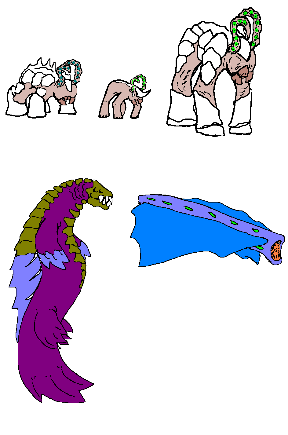 The Paw pesh line has now diverged into two separate forms, the Gripping pesh, which as stated has opossible thumbs that greatly aid in climbing and the Burrowing pesh wich has better adapted itself to life both within Jir palm trunks and beneath them, with a sturdy exoskeleton and harp, digging clas/horns.