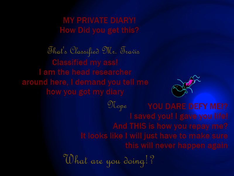 Well great, you killed Luis with your bitchfest. I bet his psychic whatever couldn't maintain when his body got pulped or something. Might as well see what the explorers of Dr. Charles Travis's office are up to.