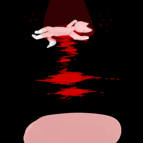 It's in the middle stages, upon closer inspection. It's beginning to dry, but it's still dripping from the wounds.