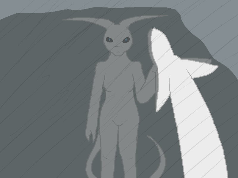 Xia pauses, her ears flicking up, looking slowly back to me with her same sad expression that never changes.