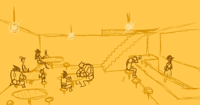 Remember to apologize to her for that, after the fight. Maybe buy her a replacement. No need to pointlessly make enemies of bystanders. We'll probably owe the barkeep / innkeeper an apology too.