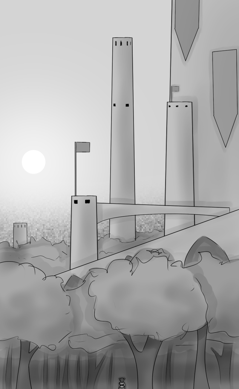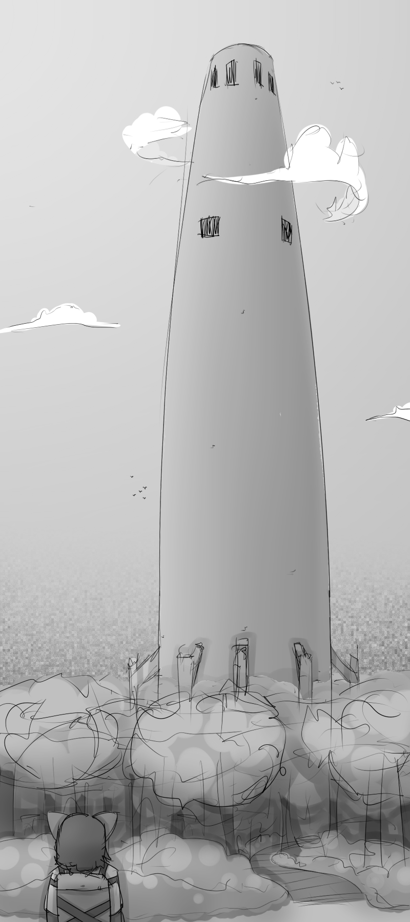 The librarian points at a tower in the distance, which you guess is where you're supposed to find the books. It then turns and leaves.