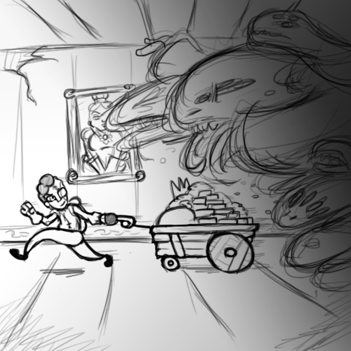 After days of wandering on his own, he began to hear rumors of a castle in the countryside where a wealthy Baroness had passed away. Since the Baroness had no heirs, her wealth by law belonged to king Pole. However, the king’s efforts to collect this gold had been disrupted by the revelation that the Baroness continued to haunt her castle from beyond the grave. King Pole decreed that whoever could retrieve the Baroness’ treasures from the castle and bring them to him would win the hand of his fourth wife's youngest daughter in marriage. Many had tried, but none had succeeded.