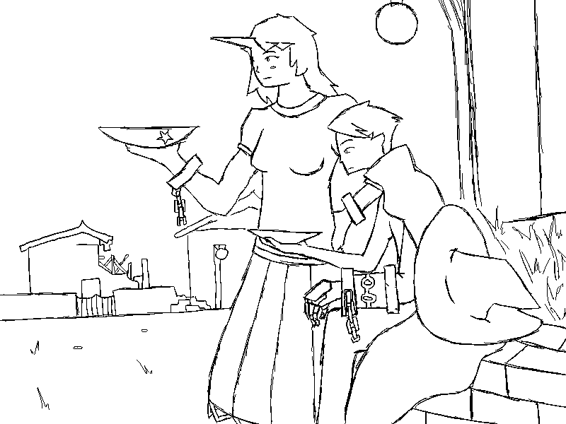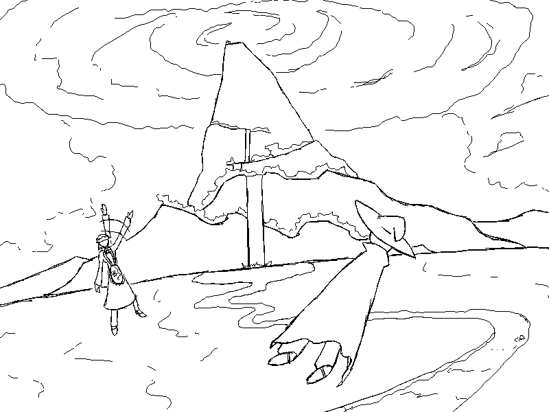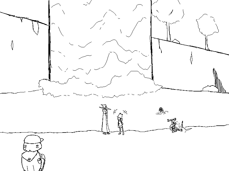 The kappa leads you down the river to a lake at the base of the mountain. A massive waterfall dominates the scenery. Several kappa work on various projects, none of which show any signs of completion. Your guide takes you over to one by the river.