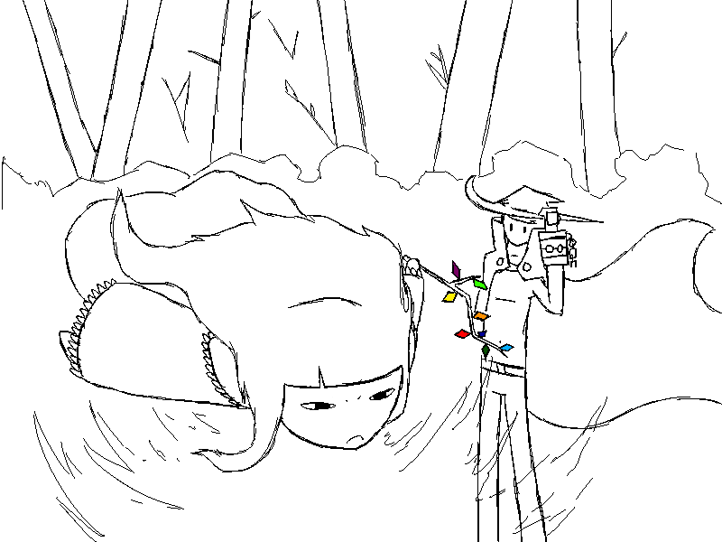 Kappa: (What are you, human? Magician? You DO know this is tengu territory, right?)