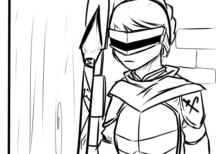 The Pathfinder removes his tabard and hands it to Selene. She thanks him and puts it over herself. It's small, barely reaching her navel, but it's enough to give her some modesty. After patching herself up a bit she sighs.
