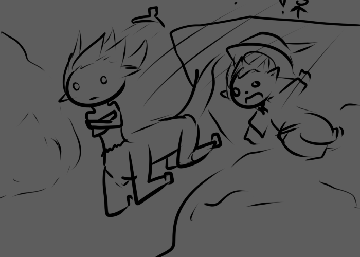 He then hears shuffling around him. His ears pick up the sound of careful movement and slowed breathing. Something is approaching him from both sides.