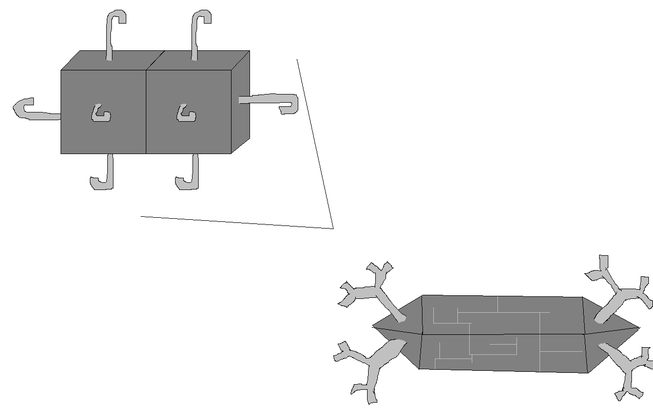 Light transport tank: is made via a 4x4 + shape with an extra layer of 4 in the center. the light tank has an obviously smaller transportation capacity but it can move much faster then the heavy tank, in fact, it can move faster then even single nanos. it's armor is much lighter and the legs are vulnerable.