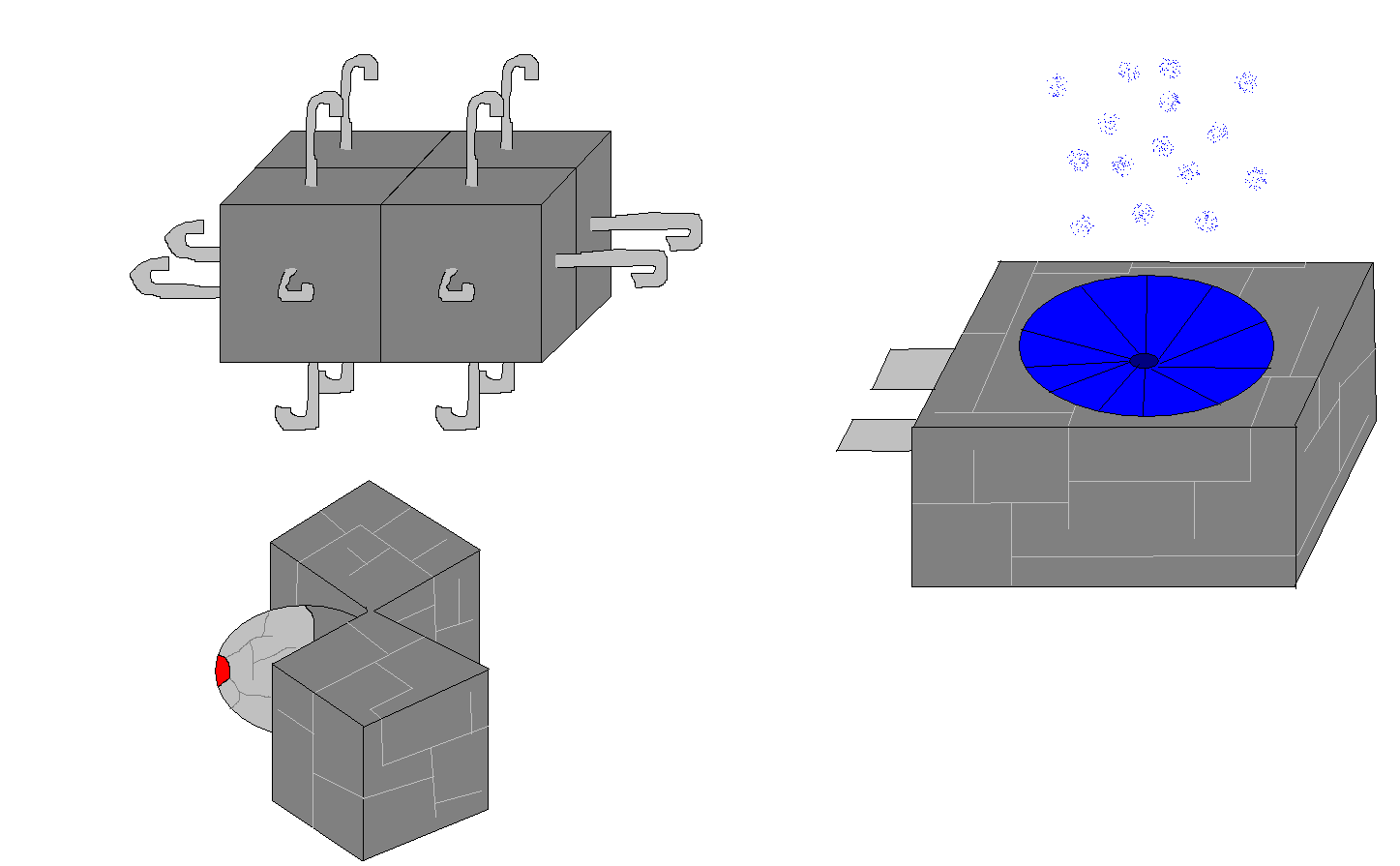 Lifter: a square of 4 nanos, it generates a localized anti-gravity field directly over it letting it lift and manipulate any micro class constructs and give various benefits to it. most obvious being it grants the beamer the ability to rotate in any direction. it can only lift an object 1 nano above itself without an extra source of power