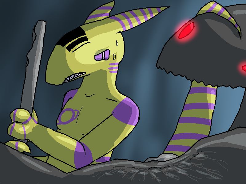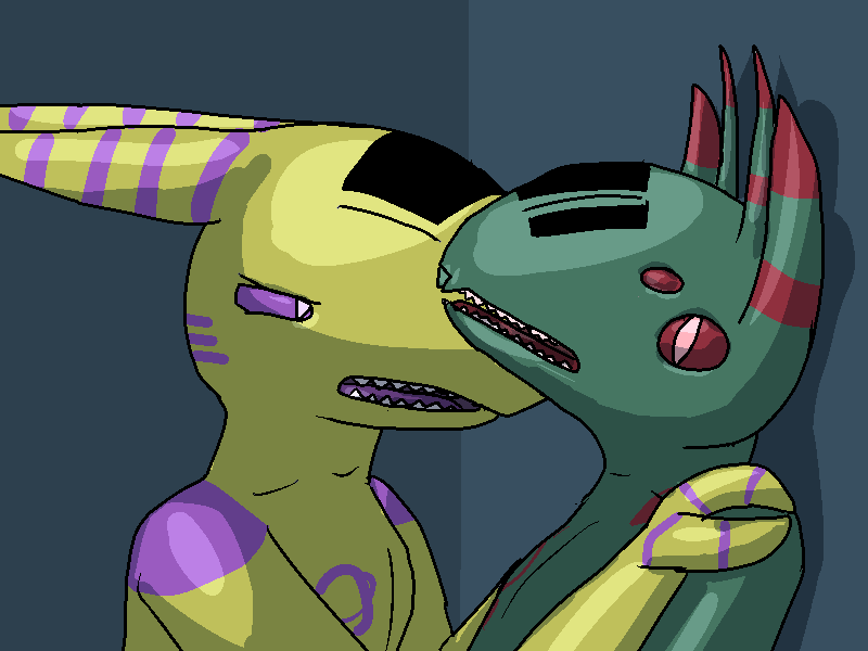 I hide next to the door and open it from a distance. She walks in, looks around in confusion and I take my opportunity. I leap at her, grab her, and smack her head into the wall. While she's dazed, I grab her tail and pull it as hard as I can. It writhes and comes off in my hand, darting frantically in the air. I wasn't expecting that to happen. I panic and throw it to the other corner of this spacious shower room.