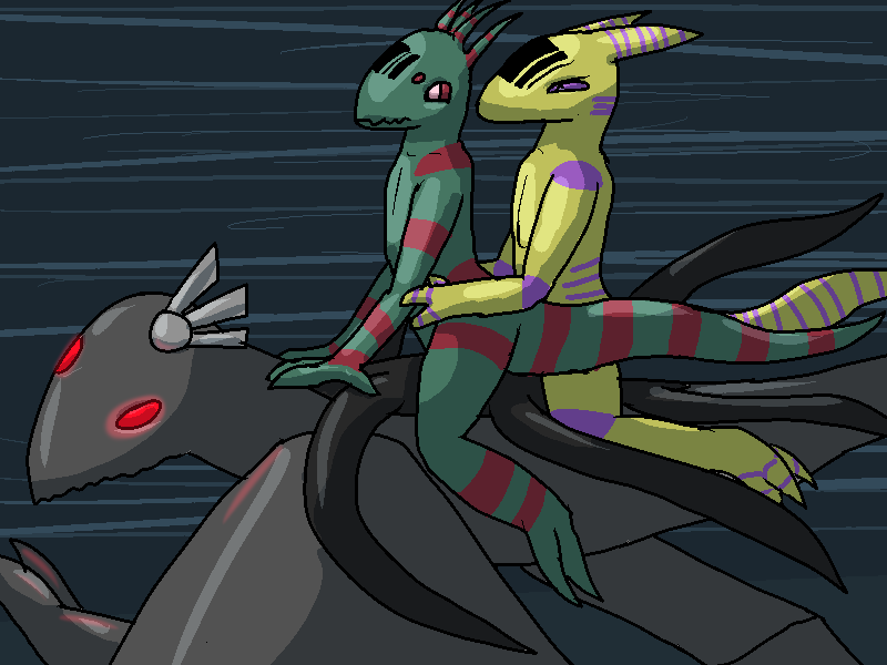 "...fine." He runs over and leaps onto Roc's back.