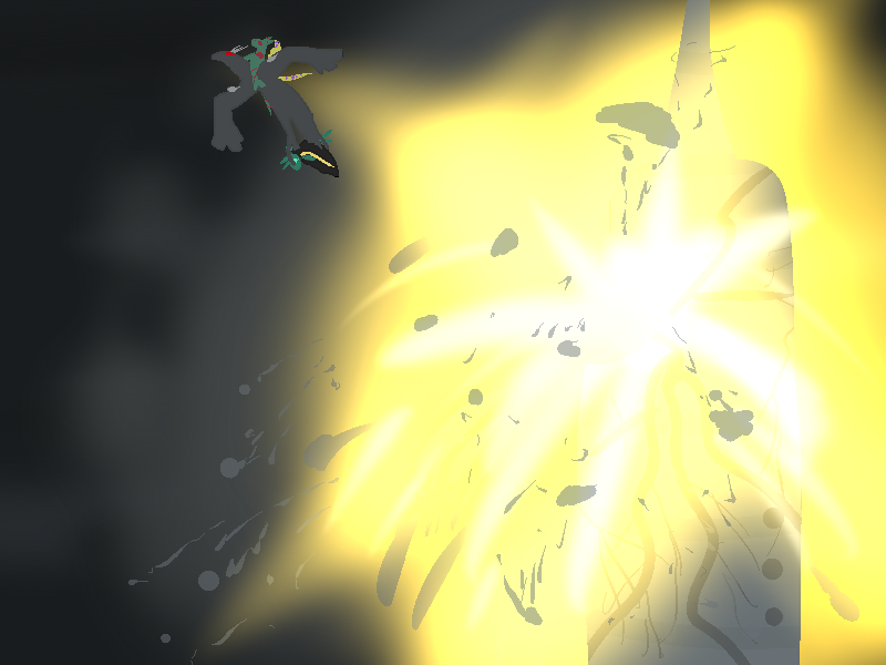 Roc skids into the ground face-first. We do not so much land as all get thrown different directions onto the soft dirt around us. In the distance, the tower groans and crumples into itself, dust clouds pluming up around it.