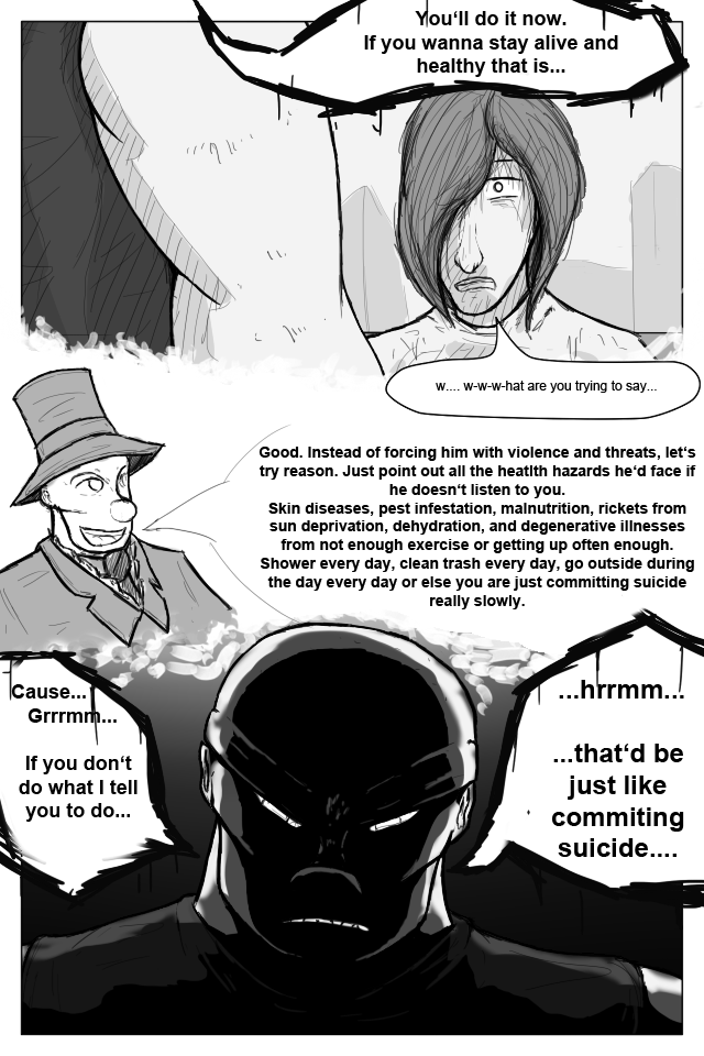 Because of skin diseases, pest infestation, malnutrition, rickets from sun deprivation, dehydration, and degenerative illnesses from not enough exercise or getting up often enough. Shower every day, clean trash every day, go outside during the day every day or else you are just committing suicide really slowly.
