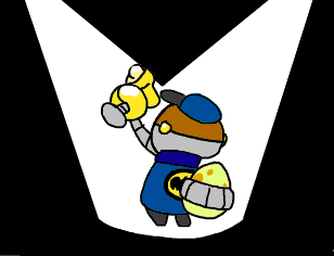 Ask him what he's doing with that thing. Do robots even need light to see?