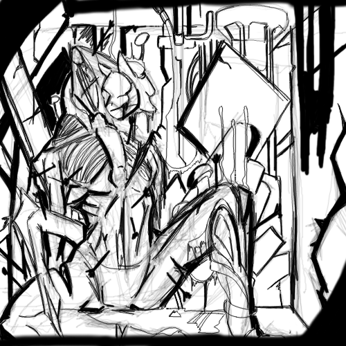 A creature is sitting amongst the debris of the Central warehouse,it looks like is not paying attention to Sivex's group for now... What will Sivex's group do?