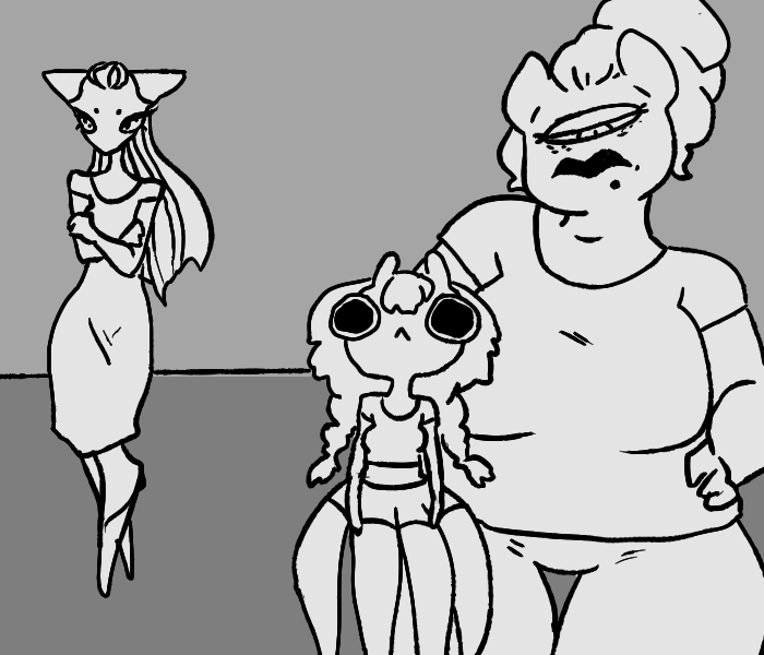 "So, uh, Skerz." I sidle up next to the youngest member of our team, pausing every now and then to take a nice big swig of a my Galaxy Gulp. "Since we're gonna be hangin' around here instead of goin' on duty, I was thinkin' -"
