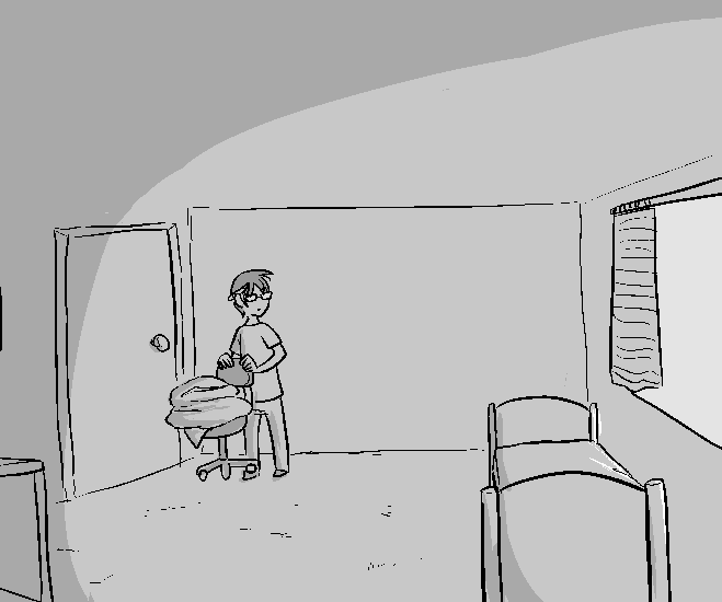 The colors in the room seem...oddly dull, as well. You don't remember your dormroom being so dismal and boring, but then again, you don't seem to remember college being particularly exciting either.