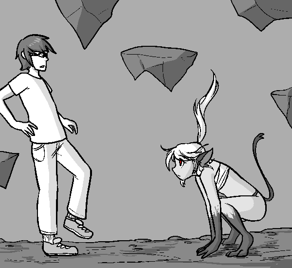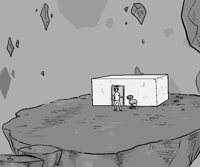 With wide eyes, you are greeted with a barren wasteland. Floating rocks hung in the air, as if time itself was frozen.