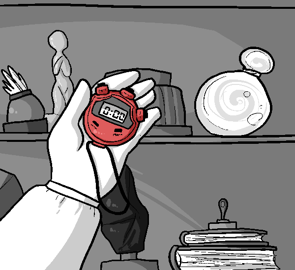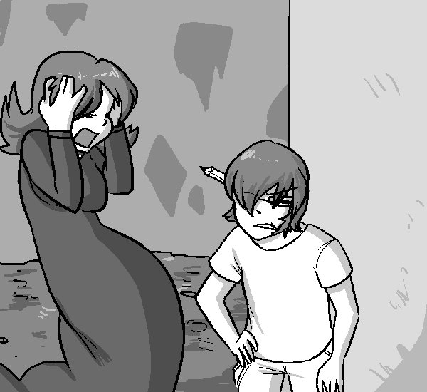 You look down at your stopwatch. It read 5:23. About 5 minutes left...you started to get a bit suspenseful. Thankfully, your attention was distracted by Mara pulling at your arm. "Look! There's the department of reformation!" It was a dull looking building. With a boring sign beside the door that read OFFICE OF REFORMING. You head on in and are greeted with a scarcely decorated, gray room. There was a strange sculpture in the corner and assorted papers posted on the walls. A desk with a large woman was located in the front room. With a door behind her that supposedly led to the back area. The woman was human looking and wore a dirt-stained sundress. She scribbled away at paperwork, occasionally using a stamp to print the words APPROVED or DENIED on the documents. Eventually she looked up at you and frowned. "Can I help you...?" Her voice was nasally and monotonous...she had obnoxious curly, brown hair and secretary glasses that made her look more snobby than necessary.