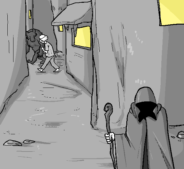 Hahaha, it would be pretty funny if it actually turned out to be a totally normal place after all, and he just strolled outside in PJs carting all his worldly possessions.