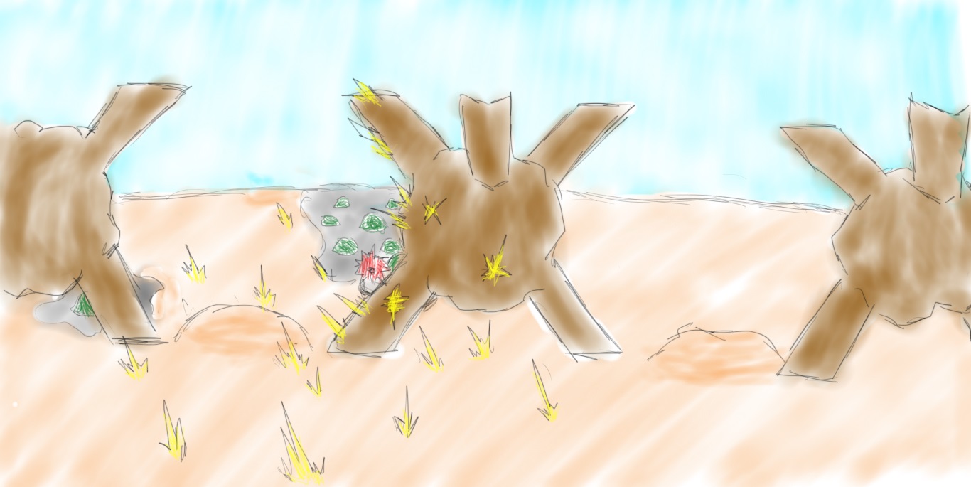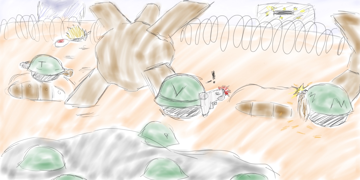 >You're a... slime soldier? Looks like a beachhead with a machine gun emplacement pointed at you.