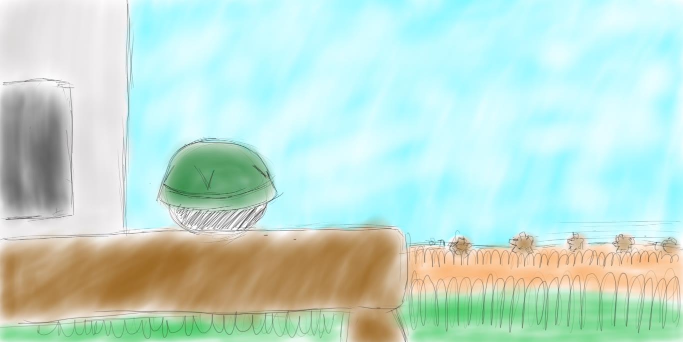 You're a... slime soldier? Looks like a beachhead with a machine gun emplacement pointed at you.