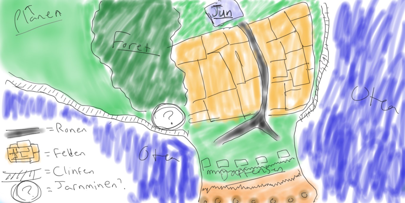 A map? It's disproportionate as fuck but it's got some important landmarks on it. West of the town is a forest, to the south-west and south-east looks like farming fields. Where should we try to find a hiding place?