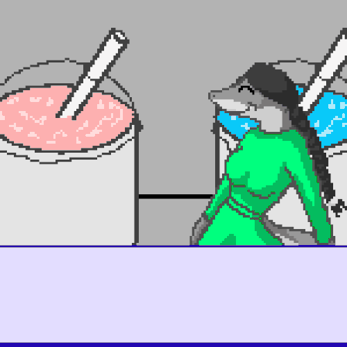 Acquire and consume strawberry shake. Avoid all blueberry shakes.