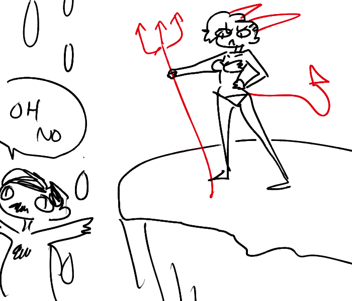 shit. i must have fallen asleep. my tail, horns, and pokey thing are gone - i guess the demons decided that if i was gonna be a drowsy little prick i wasn't allowed to be the Queen of Hell anymore
