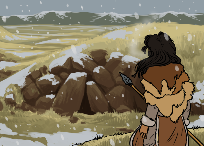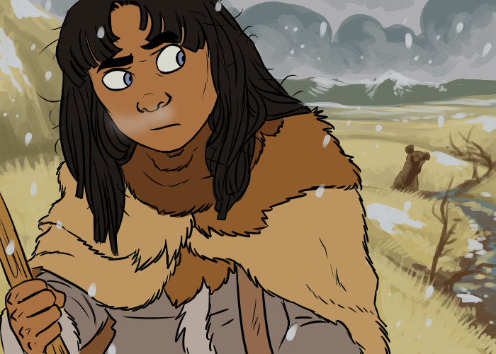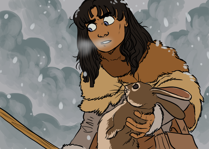 She retracts her hand, and fumbles as she places the rabbit back into her bag. Her hands are shaking a little and her heart is still pounding very fast. She knows how to pray and ask spirits for help, and thank them for a kill or for a shelter, but she's never--been face to face with one.