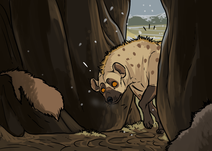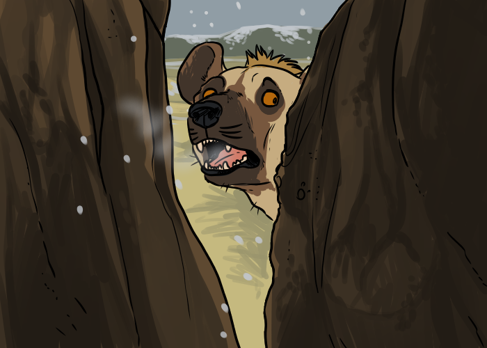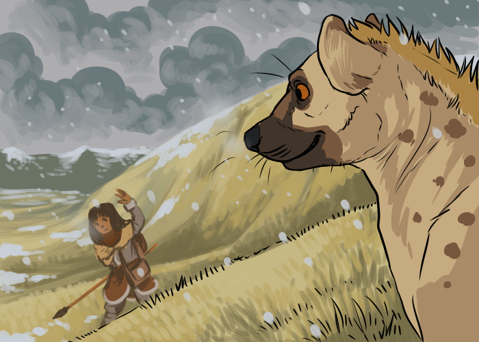 The Hyena clicks his teeth, "KEEP SMALL KILL. YOU ARE VERY SMALL MAN-PUP, EATING MIGHT MAKE YOU BIG."