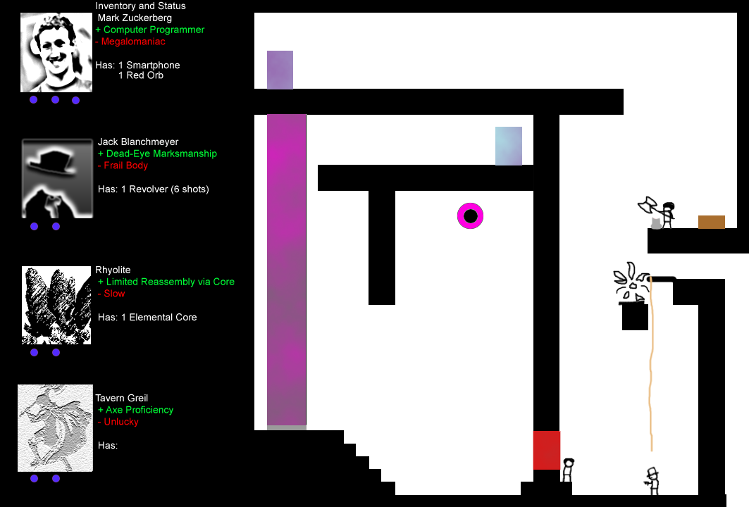 Mark Zuckerberg, a young entrepreneur with ambitions of greatness. The dark drove him from his fame and fortune, and he hopes to gain even more... as a god of the new world. With him is his trusty Smartphone. Most of the apps are useless, but he has a sound recorder and video camera. Its screen can serve as a soft light source.