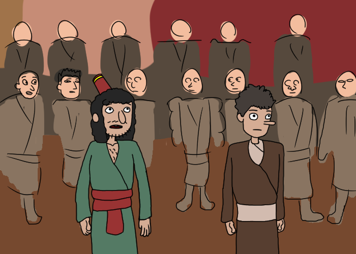 Lord Arukus - "CALM DOWN, CALM DOWN! ENOUGH OF THIS!... Lord Korguma made it perfectly clear that only five men could enter the tower at a time, once every fifty years. It's obvious that the only way we're ever going to settle this is a vote."