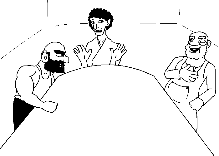 King Ramm - "AYE! THE LAD 'AS A POINT! S'MUCH AS AH HATE TO ADMIT IT, I CAN'T GO LEADIN' OUR PEOPLE FOREVER. I'VE GOTTEN OLD! AND IT IS AT THIS VERY MEETIN' THAT I'D LIKE TO ANNOUNCE ME OFFICIAL RESIGNITION FROM THE POSITION. YOU LADS ARGUE IT AMONGST YERSELVES! I'M DONE!"