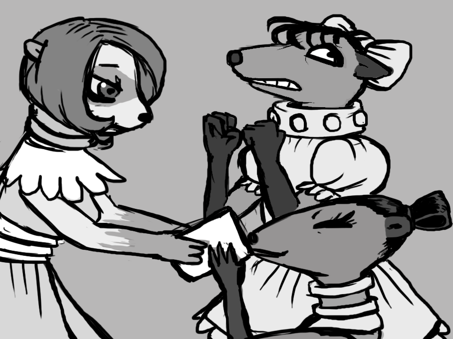 Smerking Scarlett gave a curtsey and lowered her head to her new mistress "You have such good taste my mistress Alex here looks as pretty as a porslin doll" she said sweetly making the rat blush even harder. Garbash gave a sharp nod and turned to leave "I'd like to play but I have to get my little rat stran strand mommy" this made Alex cry out in a strange mix of happiness and embarrassment