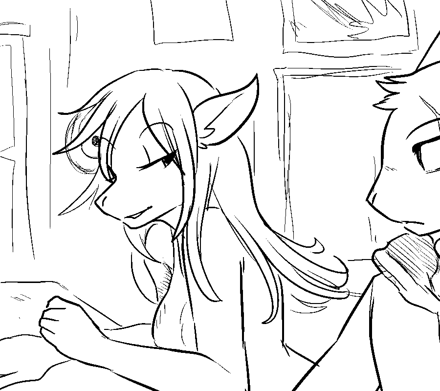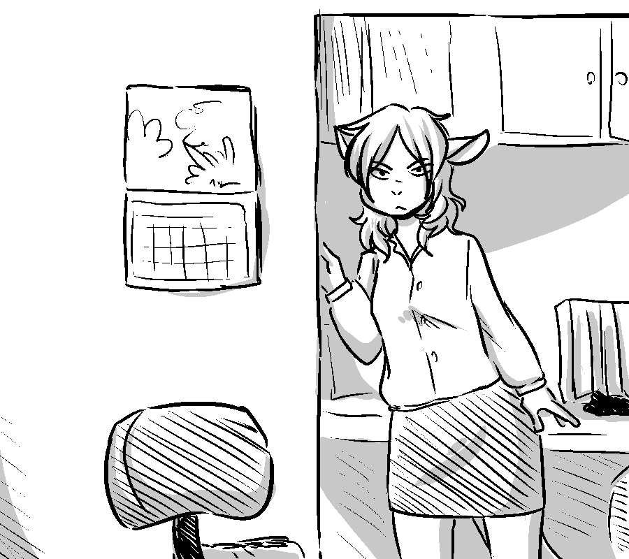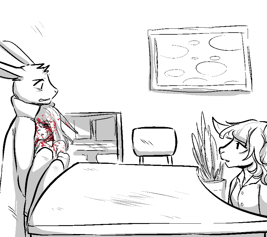 Oh, right, there ARE chairs around the table, although only 2. You grab the nearest seat and drag it towards you, easing the woman into a sitting position. "NNgh..." She groans out, tensing up in pain. "I think...I think the brat hit my back too...I can't remember anything..." With a pained expression she holds her side, grimacing at the floor. In quick motions, you quickly gather necessary supplies. A dampened cloth with hot water, a bottle of alcohol from the top of the fridge, napkins and a glass of water. "Drink up," You urge, holding the rim of the cup to her lips. Tentatively, the woman sips it down. "Th-Thank you..." She utters.