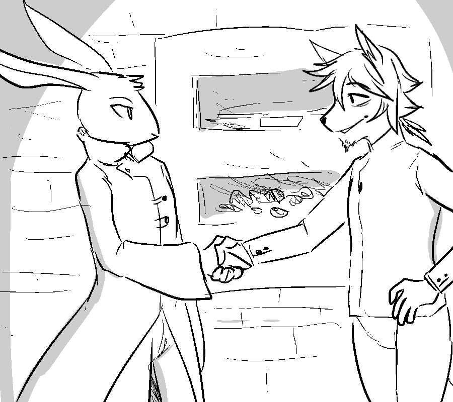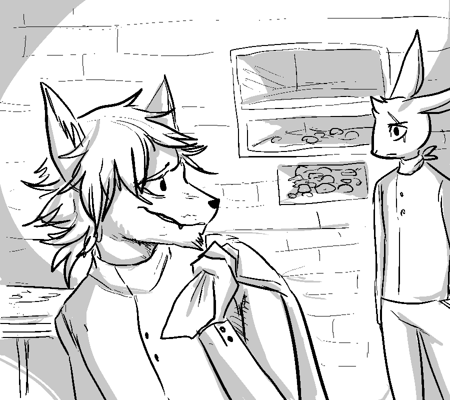 "Don't thank me yet..." You clean up the blood from her face, wiping at the cuts, causing her to flinch with each stroke. "This is going to hurt, so please try and stay quiet..." You take a thick napkin and soak a small area in alcohol. Then, you begin to wipe away at the open wounds. "Hhshh..." She hisses under her breath, holding her tongue through the stinging burns. "I got a first aid kit." The man from before entered the kitchen with a stained, white box. Inside the kit were simple medical supplies for minor injuries. Bandages, cloth, disinfectant, syringes, a tourniquet and various bottles of medicine, including aspirin and antibiotics. It took no more than 10 minutes to fully patch up the woman, the only remaining trace of injury being the blood stains on her clothing.