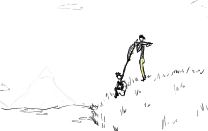 >"We're behind schedule because of him, Alf! The other three groups have already headed out!"