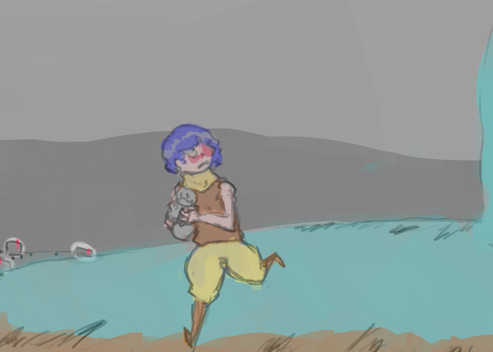 Ooh, my everything...what's it, hay? Nice, I'm prolly scratched t' hell an' my algies're gonna kick up. 'Least Mum wasn't here t' hear me yell like that. Mum'd kill me if she herd me sayin' a curse--